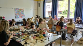 Im Zentrum des Austauschs stand ein Workshop-Karussell, in dem die Auszubildenden in gemischten Gruppen drei Runden durchliefen. Die Angebote reichten von Kooperationsspielen, die Teamgeist und Kommunikationsfähigkeit auf die Probe stellten, über kreative Workshops, in denen die Teilnehmenden verschiedene künstlerische Techniken ausprobieren und eigene Ideen umsetzen konnten, bis hin zu praxisnahen Nachhaltigkeits-Workshops. Letztere verbanden kurze Präsentationen mit interaktiven Aufgaben, bei denen die Auszubildenden nachhaltige Handlungsweisen praktisch erprobten und eigene Vorschläge für einen bewussteren Alltag einbrachten. Besonders interessant war, wie die Gruppen Sprachbarrieren überwanden und effektiv zusammenarbeiteten, kreative Lösungen fanden und voneinander lernten.