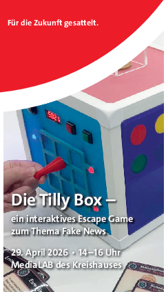 In diesem Workshop wird die Medienpädagogin Lisa Mütsch in das Tilly Box Escape-Game sowie den dazugehörigen Methodenkoffer „Fake News“ einführen. Mit der TillyBox wird Lehrkräften und pädagogischen Fachkräften ein Tool an die Hand gegeben, um mit Kindern und Jugendlichen im Alter von 10-16 Jahren einen kreativen Zugang zu aktuellen Medienpräventionsthemen zu finden. Im TillyBox-Escape-Game gilt es, Rätsel und Aufgaben zu lösen.